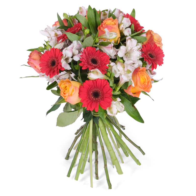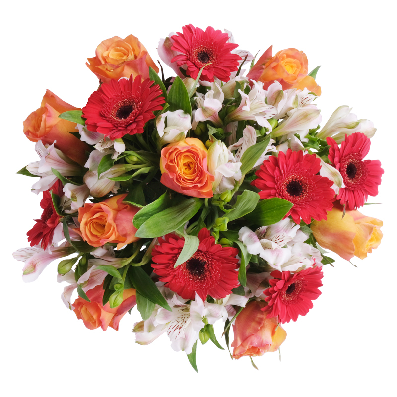 Damska kompozycja to połączenie trzech pięknych gatunków kwiatów w jednym bukiecie, który wyraża pełnię kobiecości w jej wszystkich wymiarach. Gerbery, alstromerie i róże to prezent trafiający prosto do serca każdej kobiety, wyrażający podziw dla jej siły i delikatności jednocześnie.